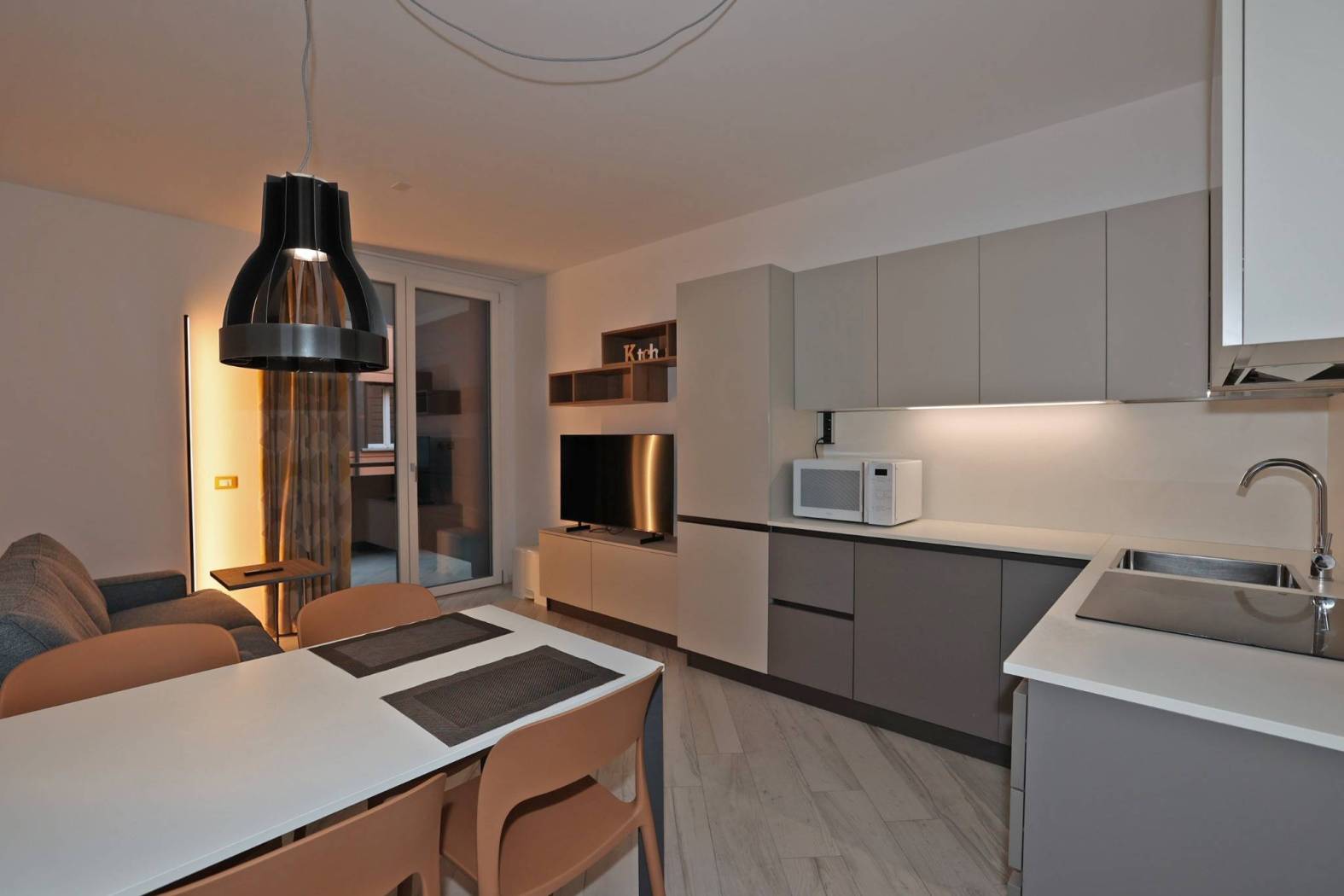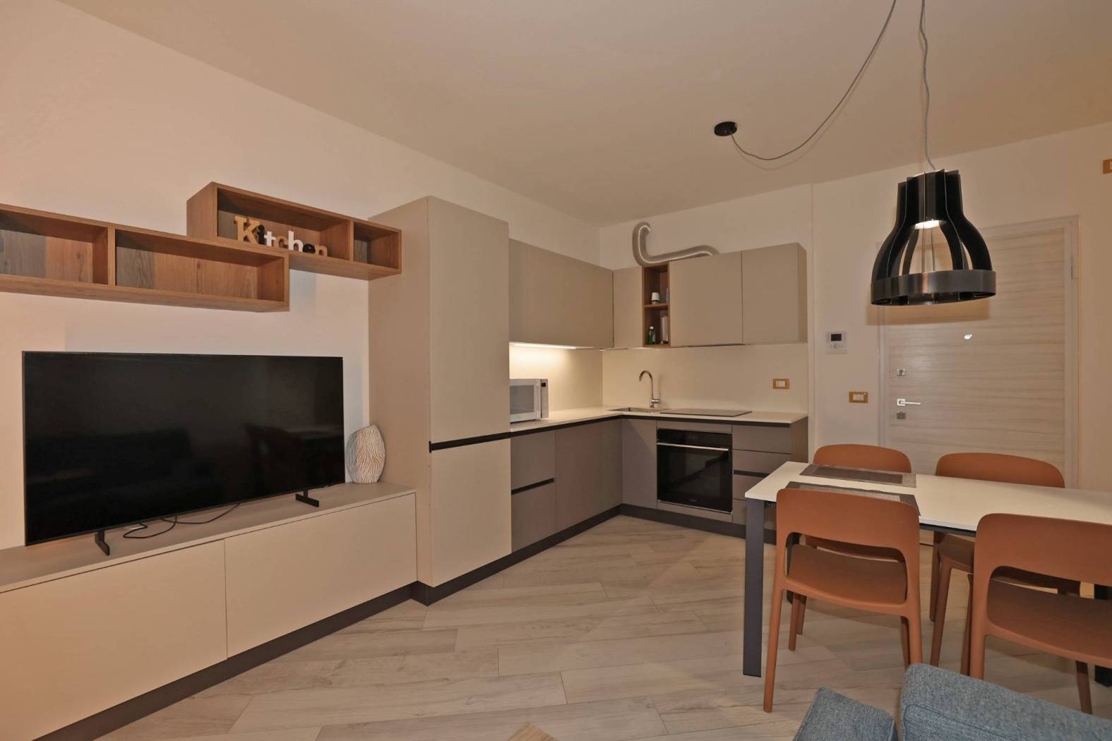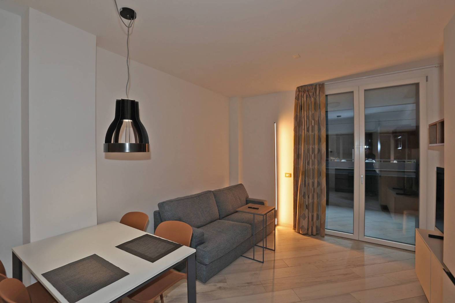 Nuova costruzione del 2022, classe energetica A3, appartamento al 2° piano, arredato a nuovo con mobilio di primissima qualità, composto da soggiorno con angolo cucina, 2 camere, bagno, terrazza coperta di 12 mq (Classe A3 EP=46,23)
